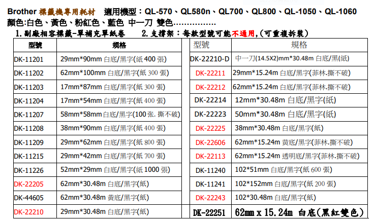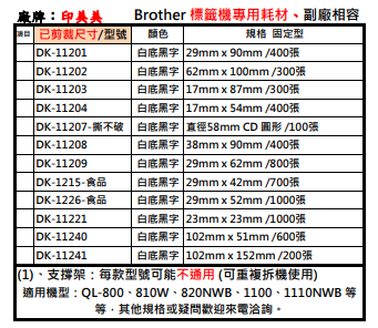 Brother DK系列連續標籤帶支架(副廠) 適用機種QL-700 , QL-720NW , QL-650TD , QL-1050 QL1060N,1060N,QL800,QL810W,QL820NWB ... dk-22205 支架